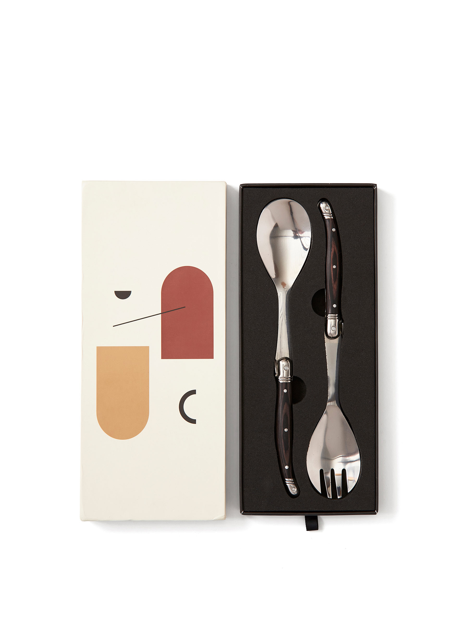 Salladsbestick i typisk franskinspirerad bistrostil av hög kvalitet. Handtag av svart pakkaträ och blad i rostfritt högkvalitativt stål. Förpackas i en exklusiv presentkartong. Endast handdisk.