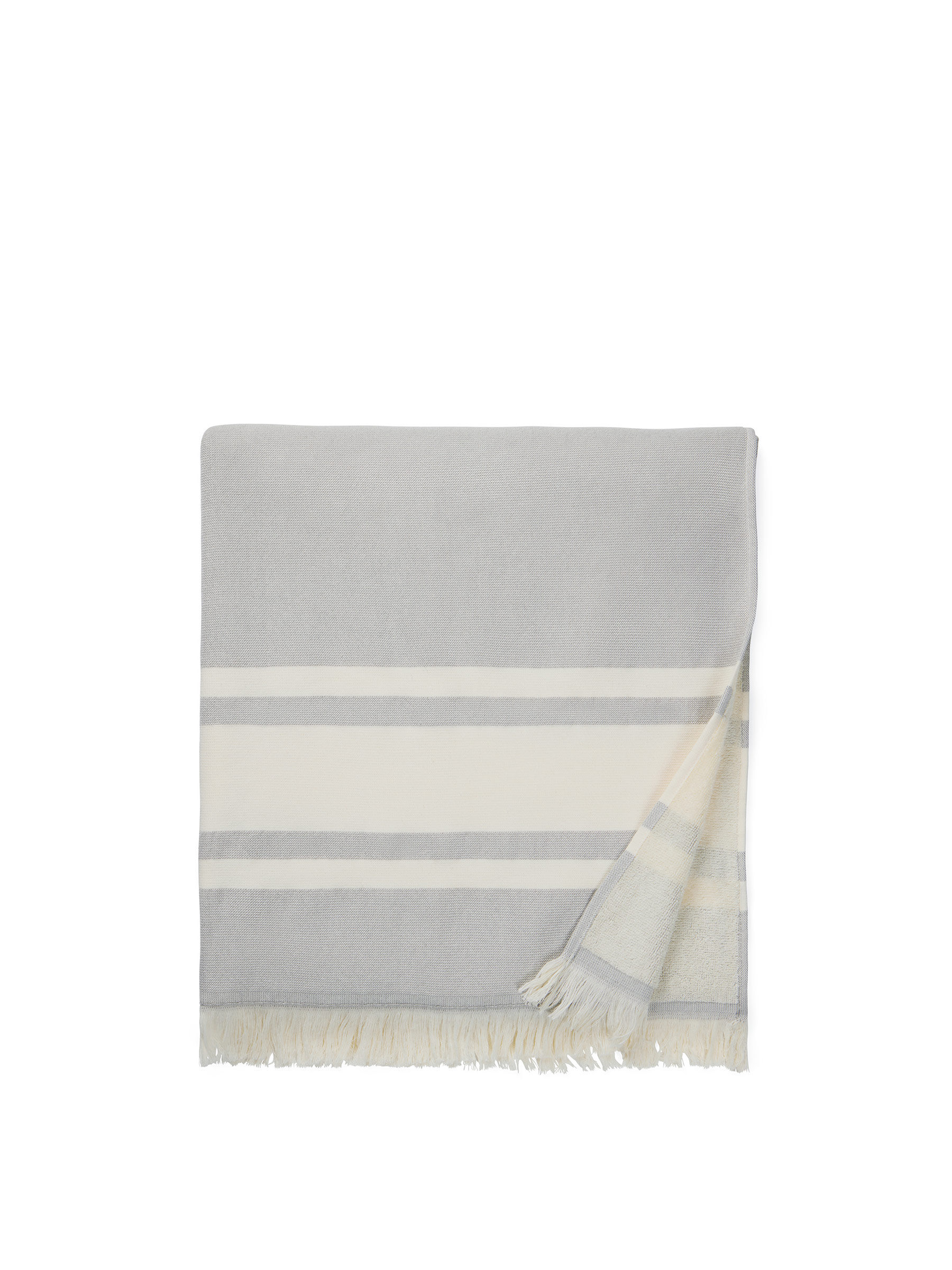 Hamam handduk designad med två olika typer av textur, den ena sidan i frotté och den andra sidan slät. Den tvåsidiga designen gör handduken till den ultimata följeslagaren för stunder på stranden, vid poolen eller under utomhusäventyr. Den erbjuder en utmärkt absorptionsförmåga och snabb torkning. Handduken är tillverkad av 75% bomull, 25% polyester och med en tjocklek på 360 g/m2. Mått 180x80 cm exklusive fransar på 5 cm. OEKO-TEX® STANDARD 100. 09.HIN.68091. Hohenstein HTTI.