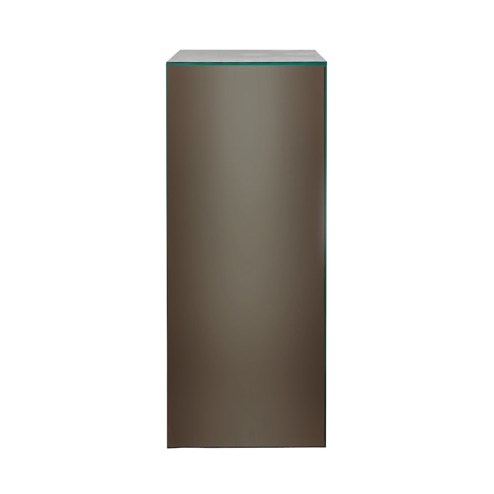 Vi älskar spegelns kraft i att dubblera allt vi redan tycker om. I Pedestal Hux har vi kombinerat spegelns makt med en klassisk piedestal. Resultatet är vackert och levande, en produkt som tar olika roller beroende på hemmet den avspeglar. Den rökigt, bruna tonen gör den sofistikerad och lyxig. Pedestal Hux är pampig och skör i all sin enkelhet, men den bär också upp allt du ber den om.