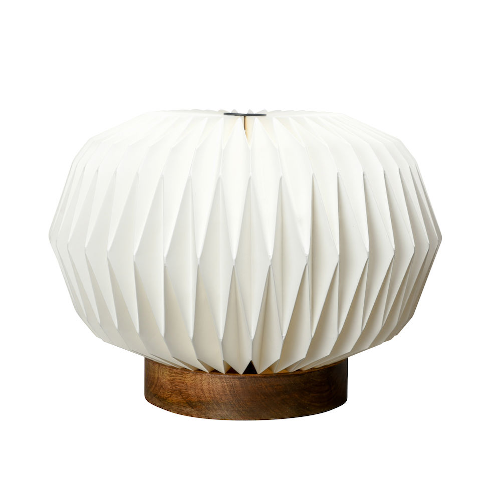 Konsten att vika papper, origami, har en lång historia i Kina och Japan. En konstform av allra ädlaste slag. Från detta har Bordslampa Origami sin inspiration - som ett konstverk i all sin enkelhet. Tillsammans med den tyngre träfoten skapas en kontrast som är både intressant och spännande. Bordslampa Origami känns ny men ändå klassisk.