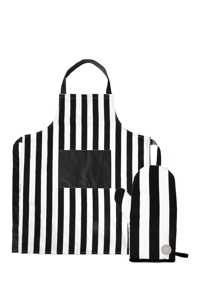 Skydda kläderna med Aron förkläde från Sagaform. Aron förkläde tillsammans med Aron grillhandske är den enda outfiten du behöver när du ska laga mat, oavsett om det är ute eller inne. Aron är designad i naturnära kulörer i kombination med Sagaforms klassiska ränder. Materialet är hållbart och tåligt och tillverkat av återvunnen bomull. En favorit för både grillmästaren och drottningen i köket.
