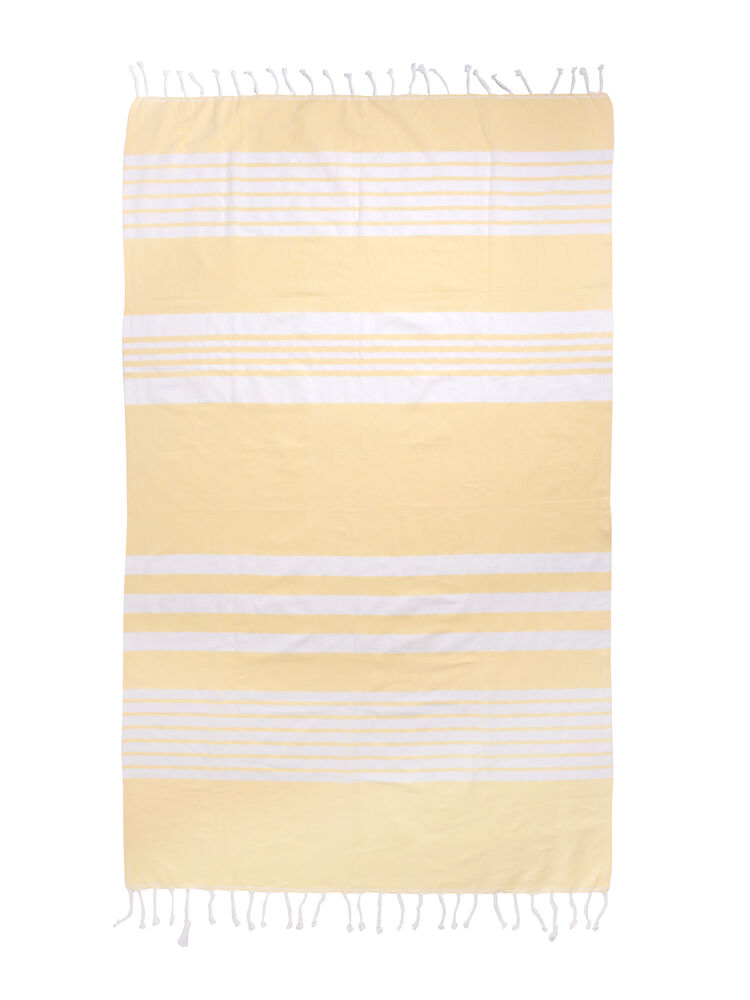 Ella Hamam är en tidlös serie som består av servetter, handdukar, dukar och väskor i tunn vävd och certifierad ekologisk bomull. Kollektionen är smyckad med Sagaforms karakteristiska ränder i olika mönster och med fransar på kortsidorna. Ella i gulvitt är en färgkombination som får oss att tänka på varma sommardagar och solmogen frukt. En handduk som får oss att njuta lite mer av varje dag.