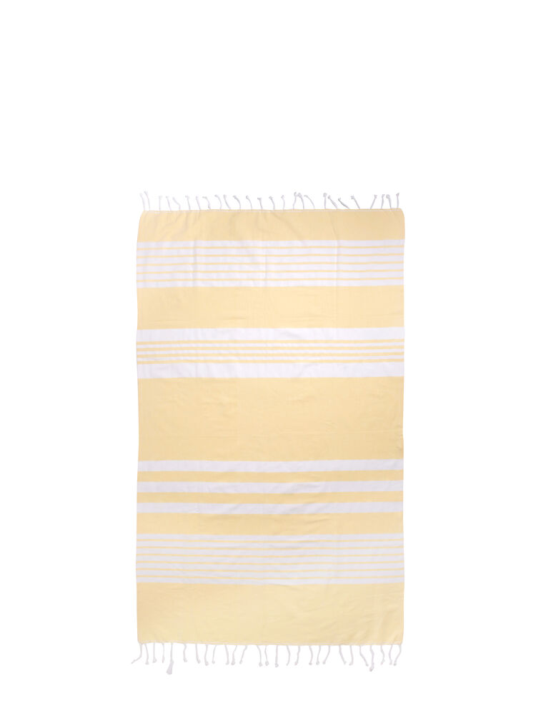 Ella Hamam är en tidlös serie som består av servetter, handdukar, dukar och väskor i tunn vävd och certifierad ekologisk bomull. Kollektionen är smyckad med Sagaforms karakteristiska ränder i olika mönster och med fransar på kortsidorna. Ella i gulvitt är en färgkombination som får oss att tänka på varma sommardagar och solmogen frukt. En handduk som får oss att njuta lite mer av varje dag.