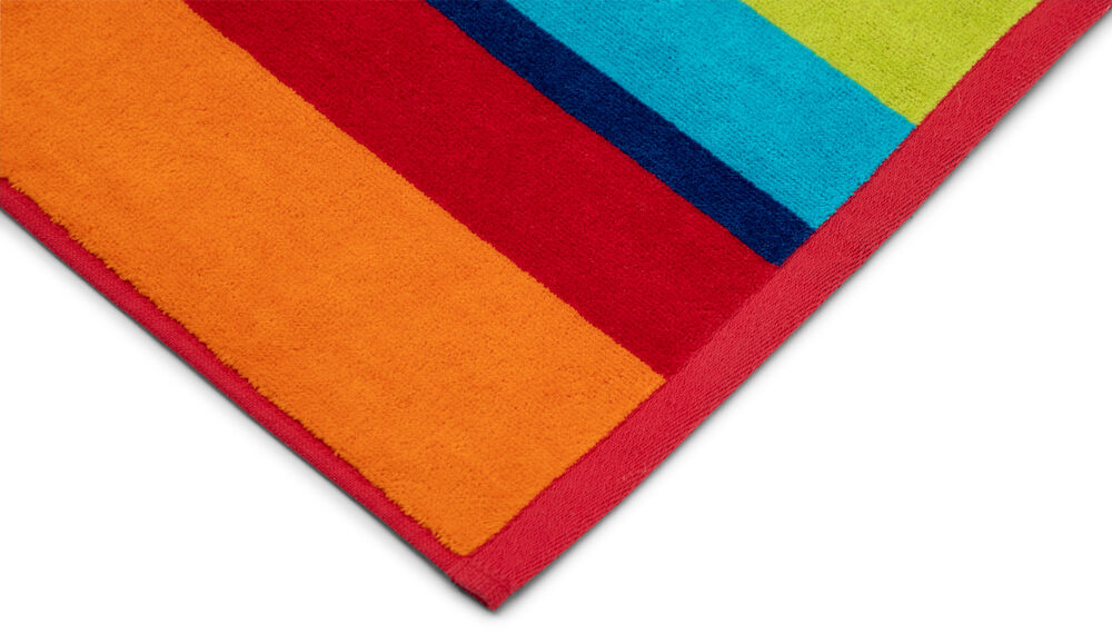 Färgglatt badlakan som sticker ut på stranden och är lätt att hitta efter badet.