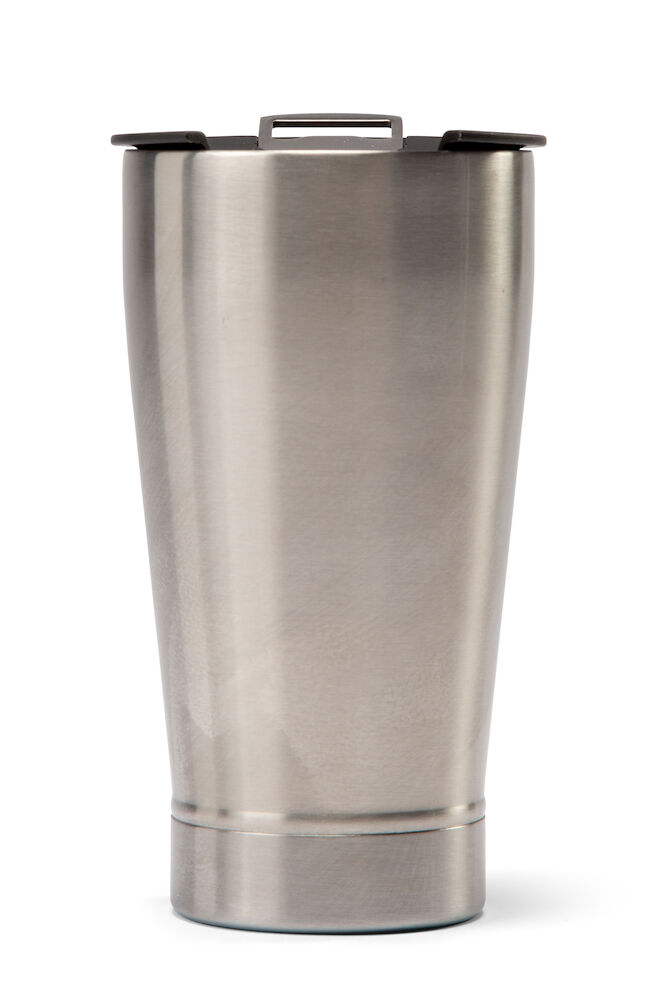 Isolerad mugg från Orrefors Jernverk. En vakuumisolerad mugg med dubbelvägg som håller kylan under en längre tid. I locket finns en liten öppning att dricka ur samt en praktisk kapsylöppnare som du med lätthet tar loss. Är starttemperaturen 0 grader C med en yttre temperatur av 23 C så håller den c:a 0,7 C efter 4h.