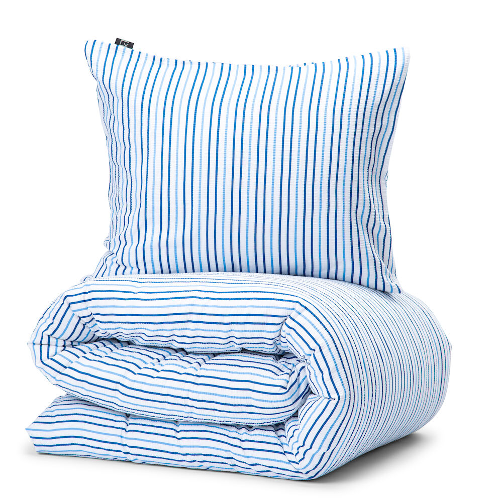 Bäddset med lantligt, randigt mönster i skön bäckebölja som ger en luftig och svalkande känsla mot huden.