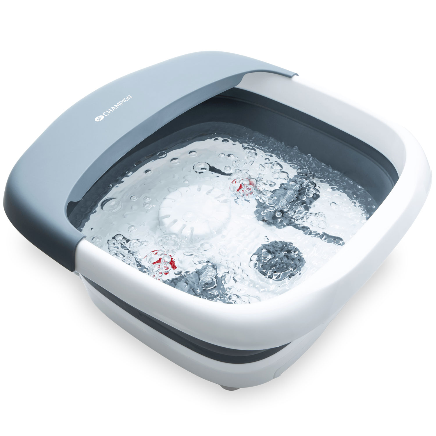 Med Champion fotbad tar du hand om dina fötter – ge dem ett avslappnande spabad och njut av den uppiggande effekten. Detta fotbad har utrustats med vibration, ett rogivande infrarött ljus, mjukgörande bubblor och en behaglig värmande effekt. Med en rymlig storlek på 5L och smart vikbar konstruktion är den enkel att använda och kommer bli en favorit i läshörnan eller framför Tv: n.