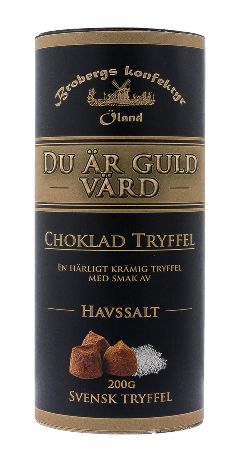 Svensk premiumtryffel i fin förpackning med smak av havssalt.