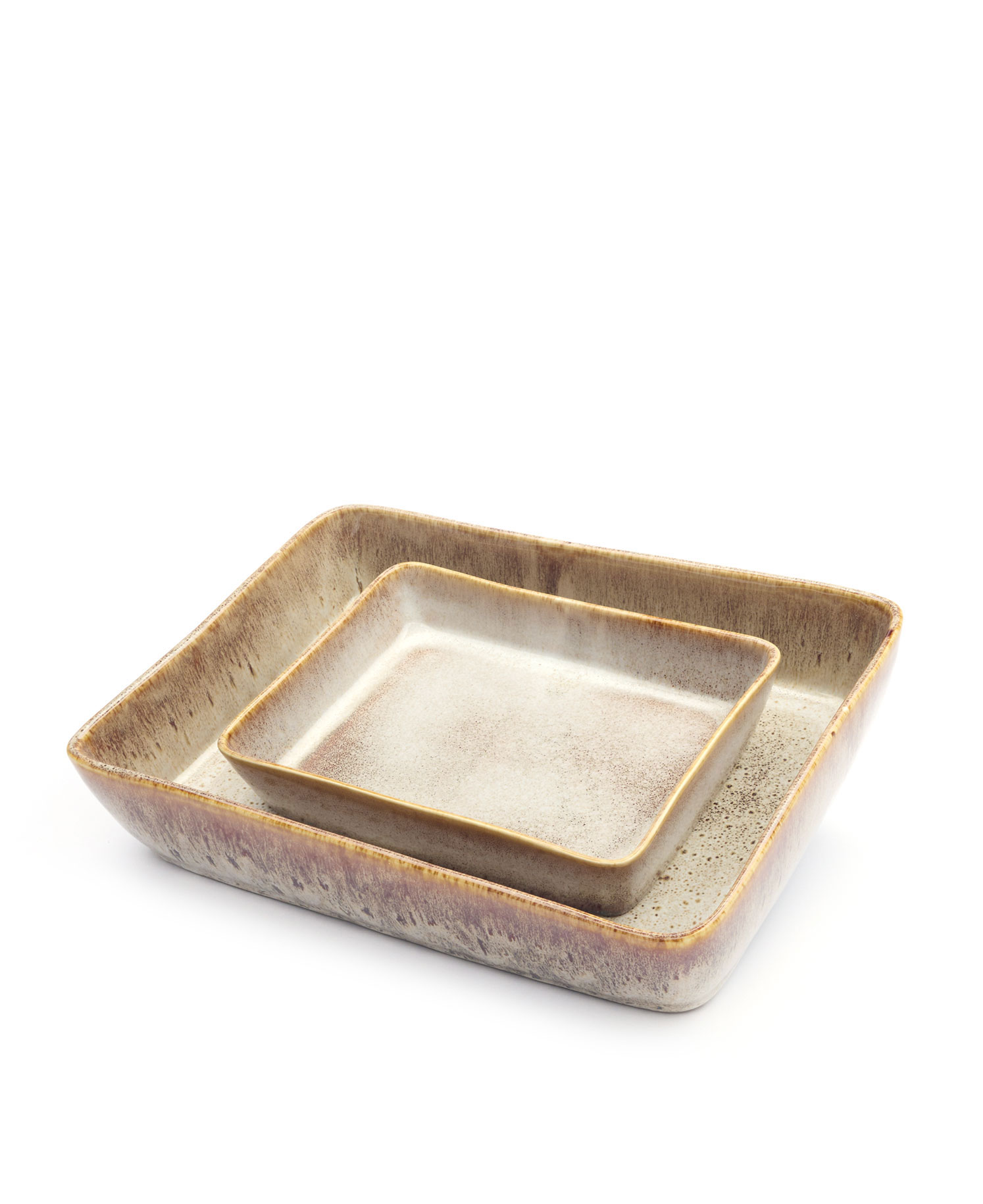 Härligt melerade ugnsformar som ger en livlig känsla. Passar lika bra i ugnen som ett uppläggsningsfat på bordet. Kommer i två pack med måtten 22x30x6cm samt 15x20x4cm.