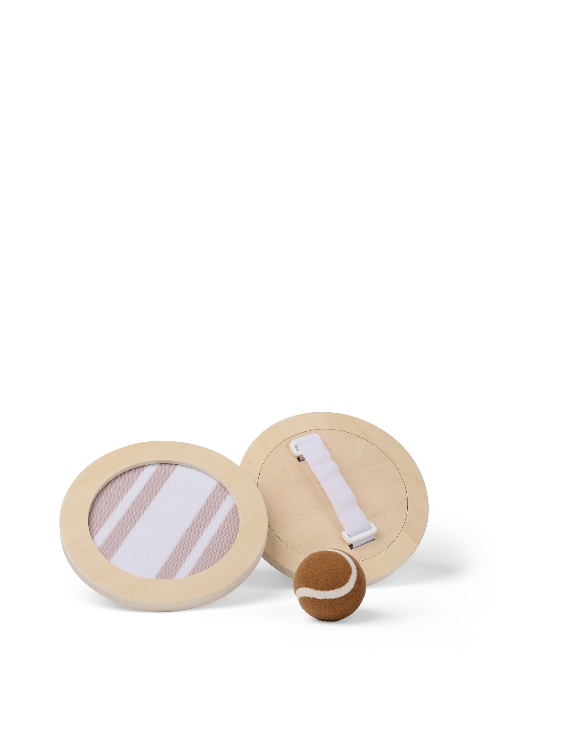 Detta utomhusspel är perfekt att ta med till stranden eller parken för en aktiv och rolig stund. Setet innehåller en boll och två kardborrefångare, tillverkade av FSC®-certifierat plywood. Kastarna har ett subtilt, tvåfärgat randigt mönster och matchas med en brun boll. Spelet levereras i en bomullspåse, vilket gör det enkelt att bära med sig. Spelregler ingår.