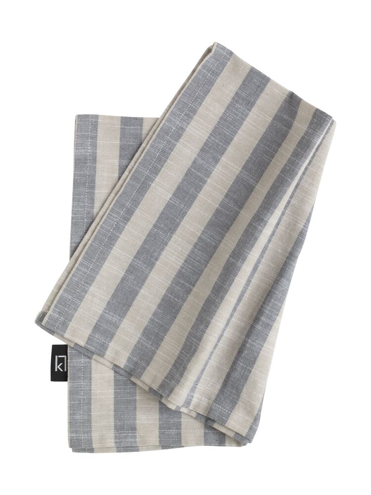 Stilrena och eleganta kökshanddukar i 100% återvunnet material. Snygg linnekänsla och klassiska ränder i grått eller blått. Tillverkad i 70% återvunnen bomull och 30% återvunnen polyester.