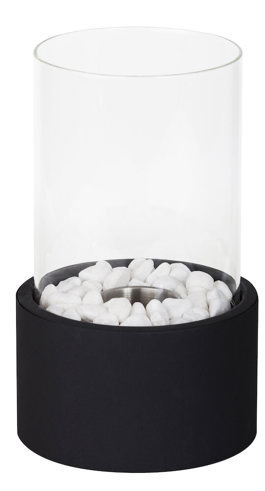 Denna vackra lykta levereras med både utsmyckningsstenar och en brännare för spisbränsle (bioetanol). Levereras också med en bricka för värmeljus och kronljus.