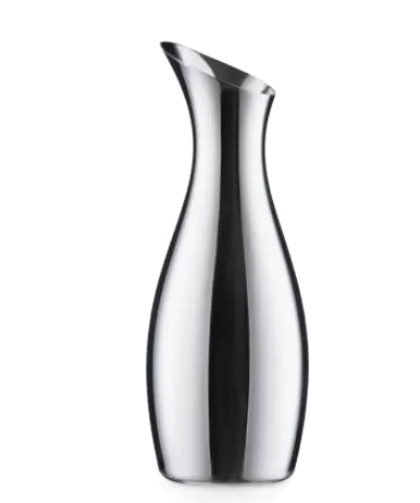 Elegant, blankpolerad stålkanna med graciösa linjer i stilren design. Kannan är utan handtag, har mattpolerad insidan och rymmer 1 liter, perfekt när du serverar ett glas vatten till vinet. Design Mencke & Vagnby.