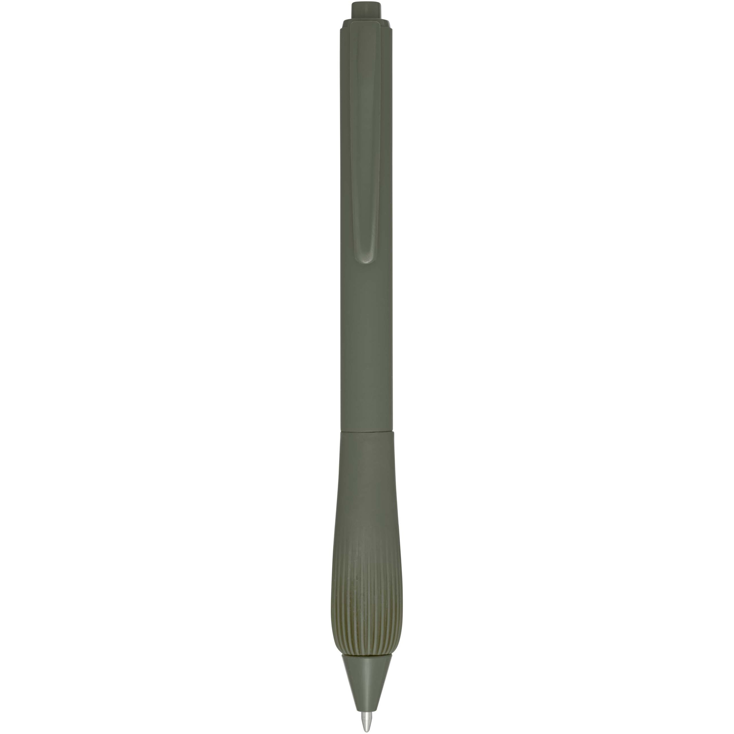 Kulspetspenna av återvunnen plast med gummerad pennkropp och grepp av TPR. Bläckfärg: Svart. Skrivlängd: 1000 meter. NIB-storlek: 1,0 mm.