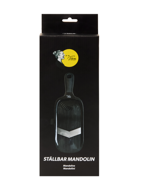 Kocken Tina Nordströms mandolin är ställbar i tre olika tjocklekar samt ett säkert läge för riskfri förvaring. Mandolinen har ett sylvasst stålblad och ett greppvänligt handtag. Tjockleken ställs enkelt in med vredet på sidan av mandolinen. Ett fingerskydd med bra handtag medföljer. OBS! Använd aldrig mandolinen utan fingerskyddet, för er säkerhets skull.