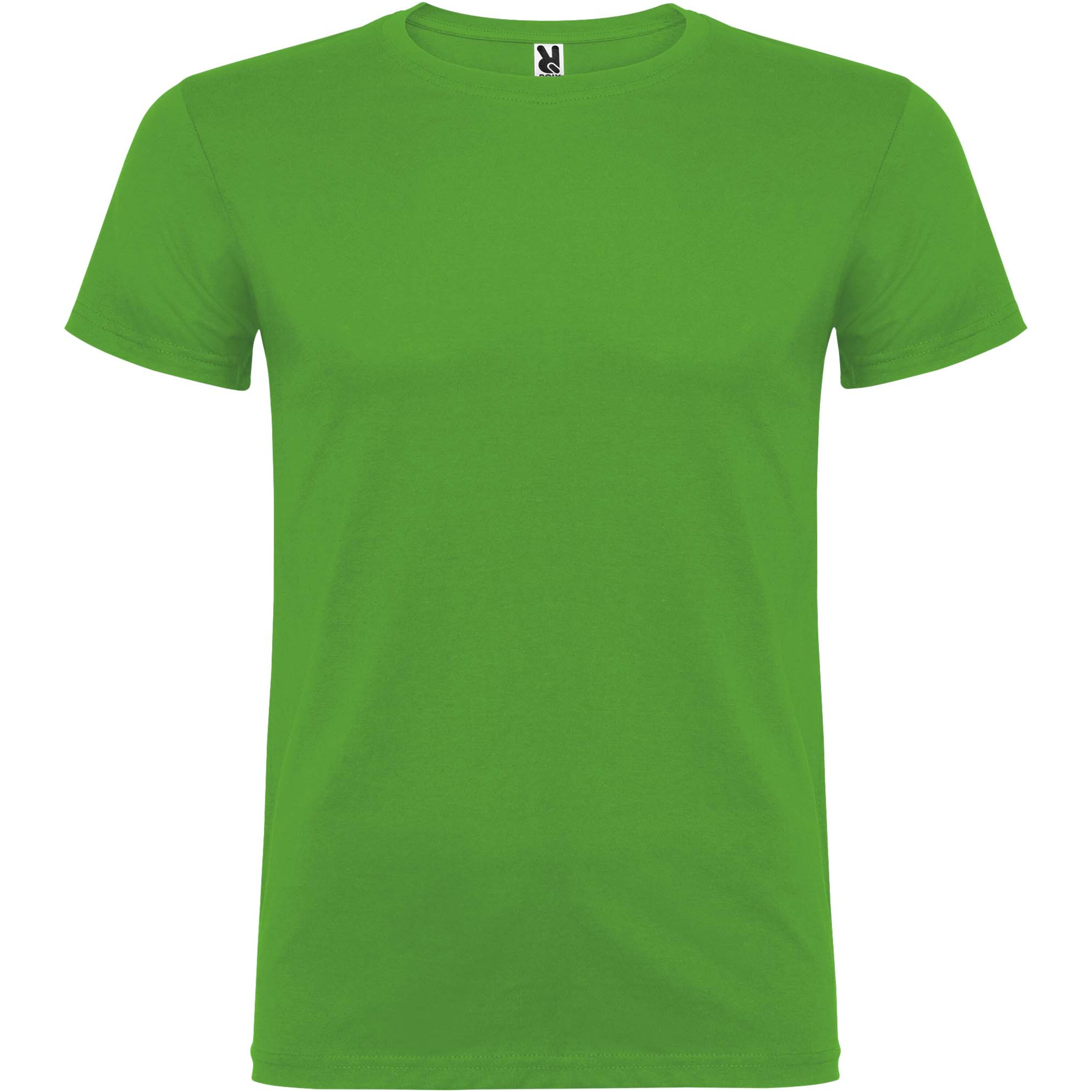 Kortärmad T-shirt med dubbel rund halsringning i elastan, tillverkad i tubstickat tyg för vuxna. Förstärkta dolda sömmar i kragen. Borttagbar etikett. Modellen är 190 cm och bär storlek L.