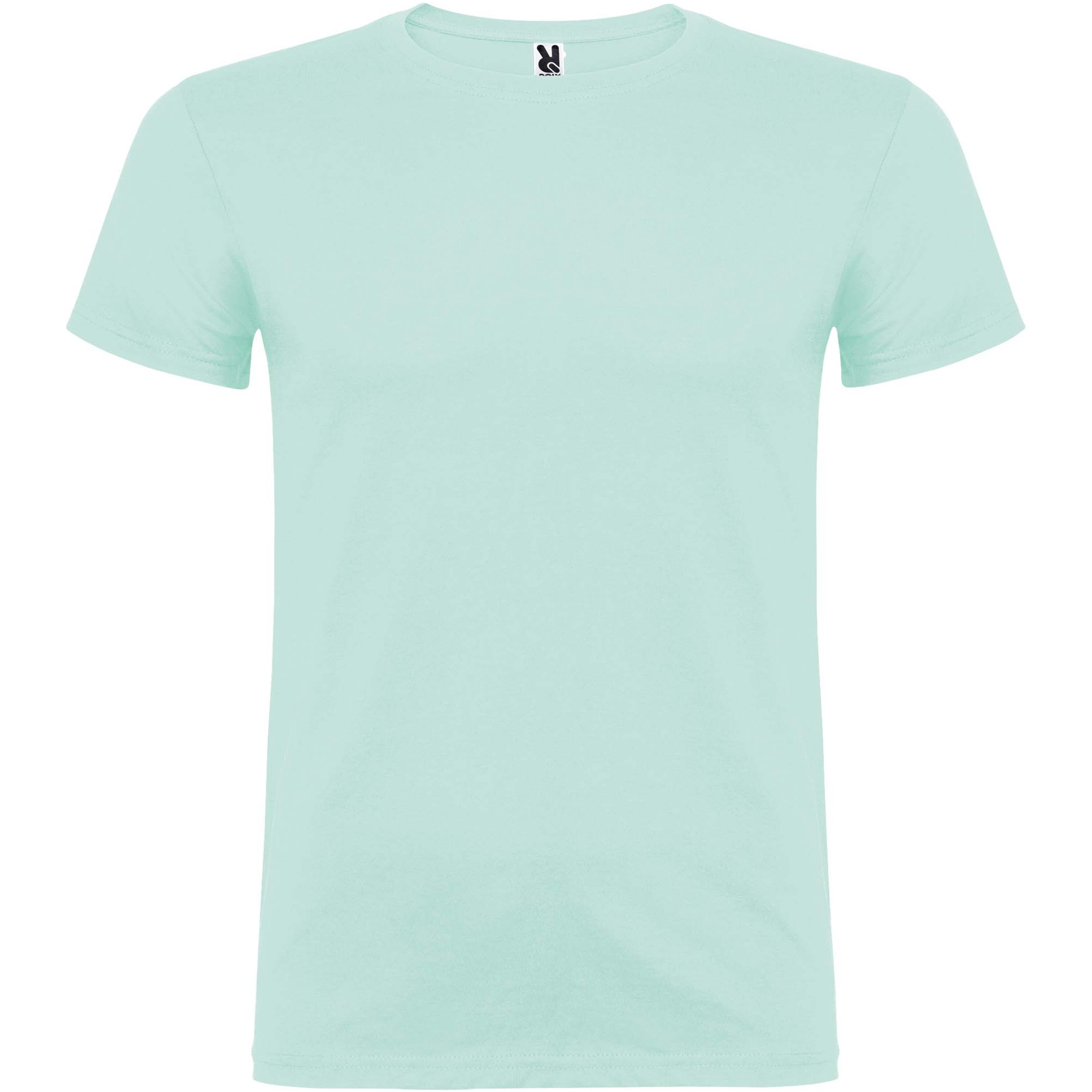Kortärmad T-shirt med dubbel rund halsringning i elastan, tillverkad i tubstickat tyg för vuxna. Förstärkta dolda sömmar i kragen. Borttagbar etikett. Modellen är 190 cm och bär storlek L.