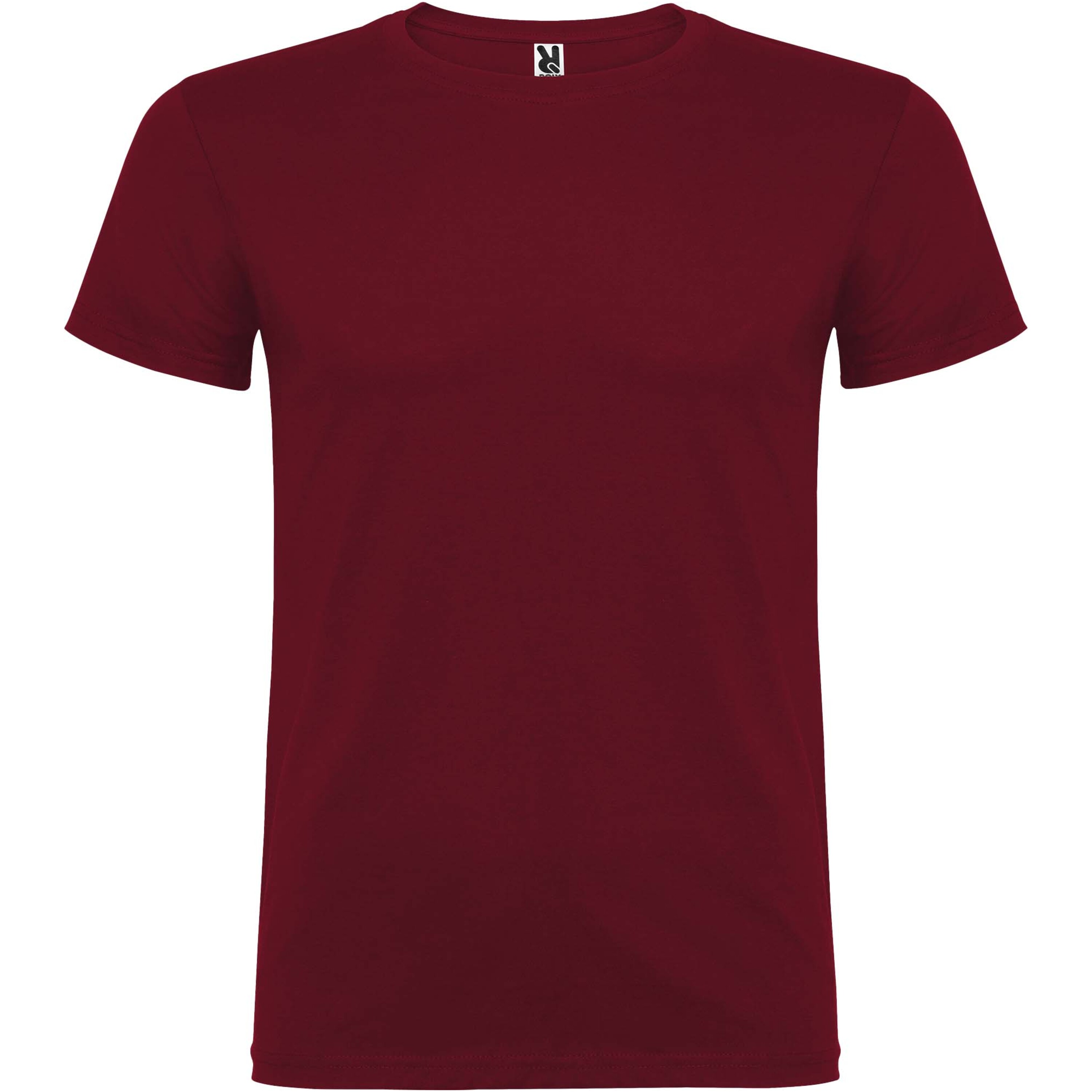 Kortärmad T-shirt med dubbel rund halsringning i elastan, tillverkad i tubstickat tyg för vuxna. Förstärkta dolda sömmar i kragen. Borttagbar etikett. Modellen är 190 cm och bär storlek L.