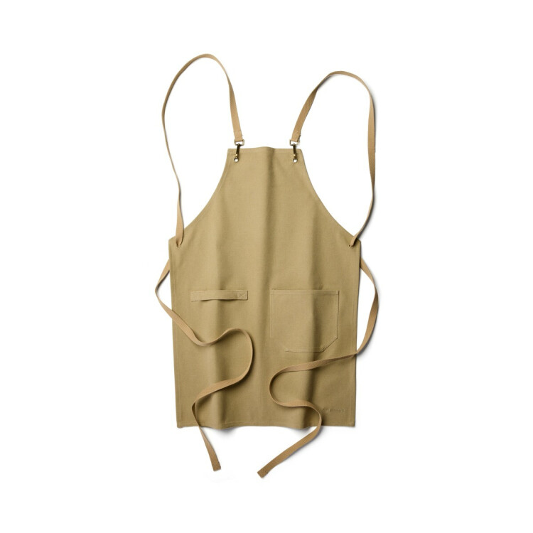 Förkläde i bomullscanvas - Praktiskt och elegant. Följbart material för bekväm passform. Rymlig frontficka för förvaring och praktisk ögla för att hålla kökshandduk eller redskap på plats. Korslagda band i ryggen som knyts runt midjan för högre komfort.