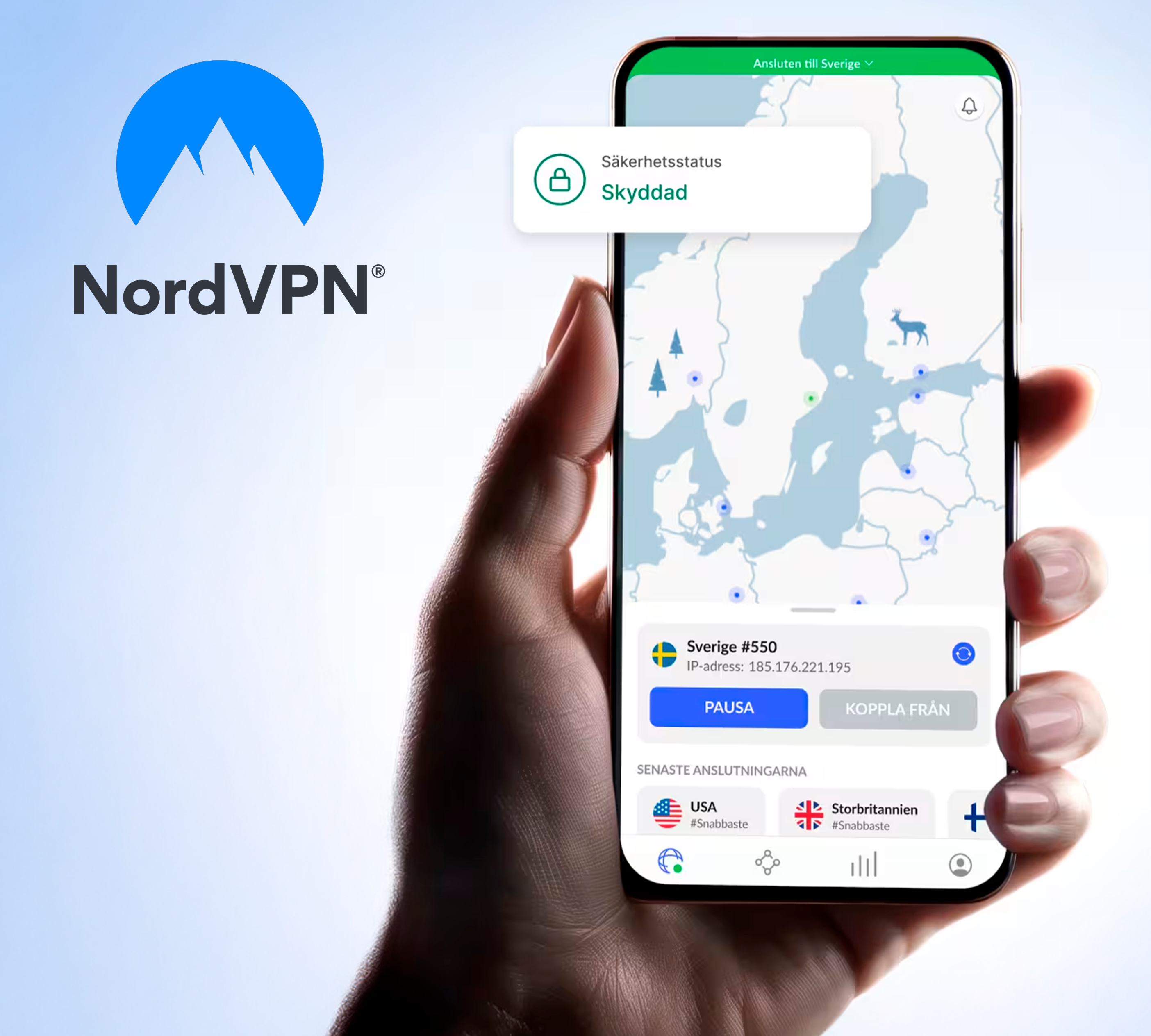 Upplev ett mer privat och säkrare internet, blockera skadliga webbplatser, stoppa webbspårare och övervaka dina dataläckor – allt i en app. NordVPN är en tjänst som ger dig säker och privat tillgång till internet. Genom att kryptera din anslutning så döljer NordVPN din IP-adress och onlineaktivitet från nyfikna ögon och håller dina data säkra från cyberbrottslingar. Du kan använda VPN-anslutningen på olika enheter, inklusive Windows PC, MacOS, Linux, Android- eller iOS-telefoner, surfplattor och smarta TV-apparater.