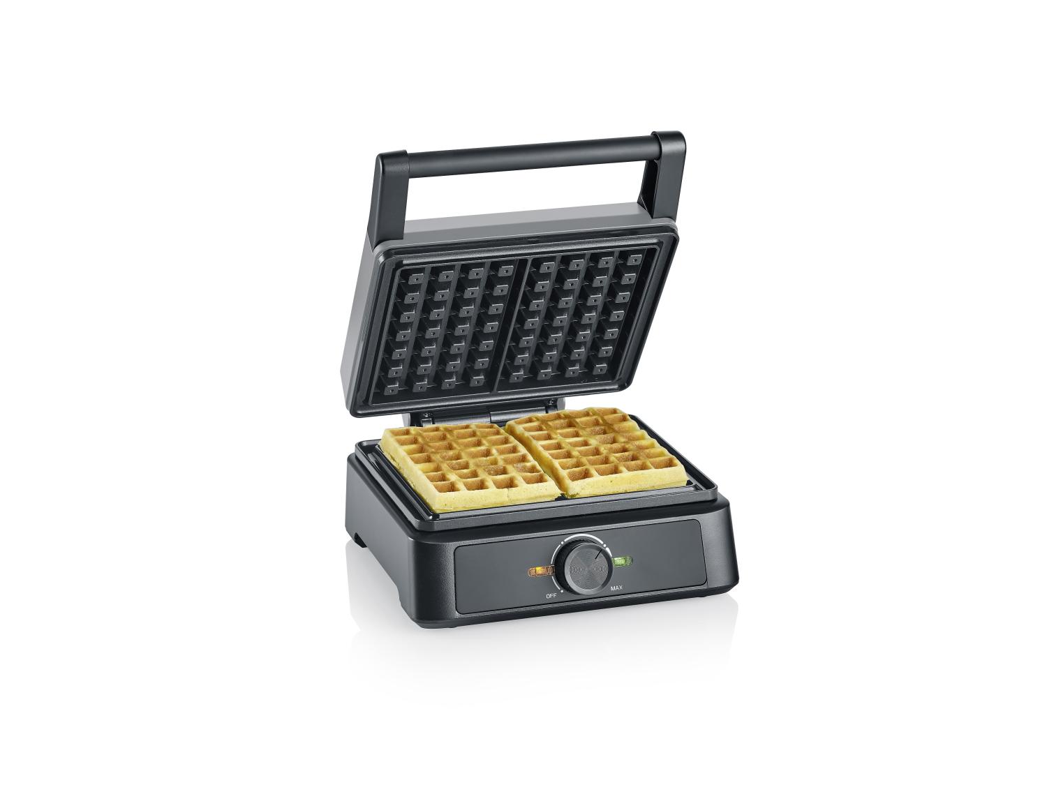 Effekt: 1600W Gräddar 2st våfflor samtidigt Keramiskbeläggning helt fri från PFAS Lampa med klar att använda indikation Justerbar temperatur