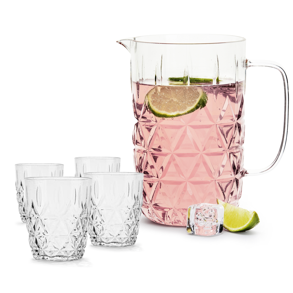 Minska på plasten, med hållbar plast. När vi ska ut i naturen behöver vi slittåliga produkter att äta på. Denna picnickserie är dessutom så tjusig så att man med fördel kan duka med den på altanen, uterummet eller balkongen. Tillbringare 1,2 liter. Akrylplast.