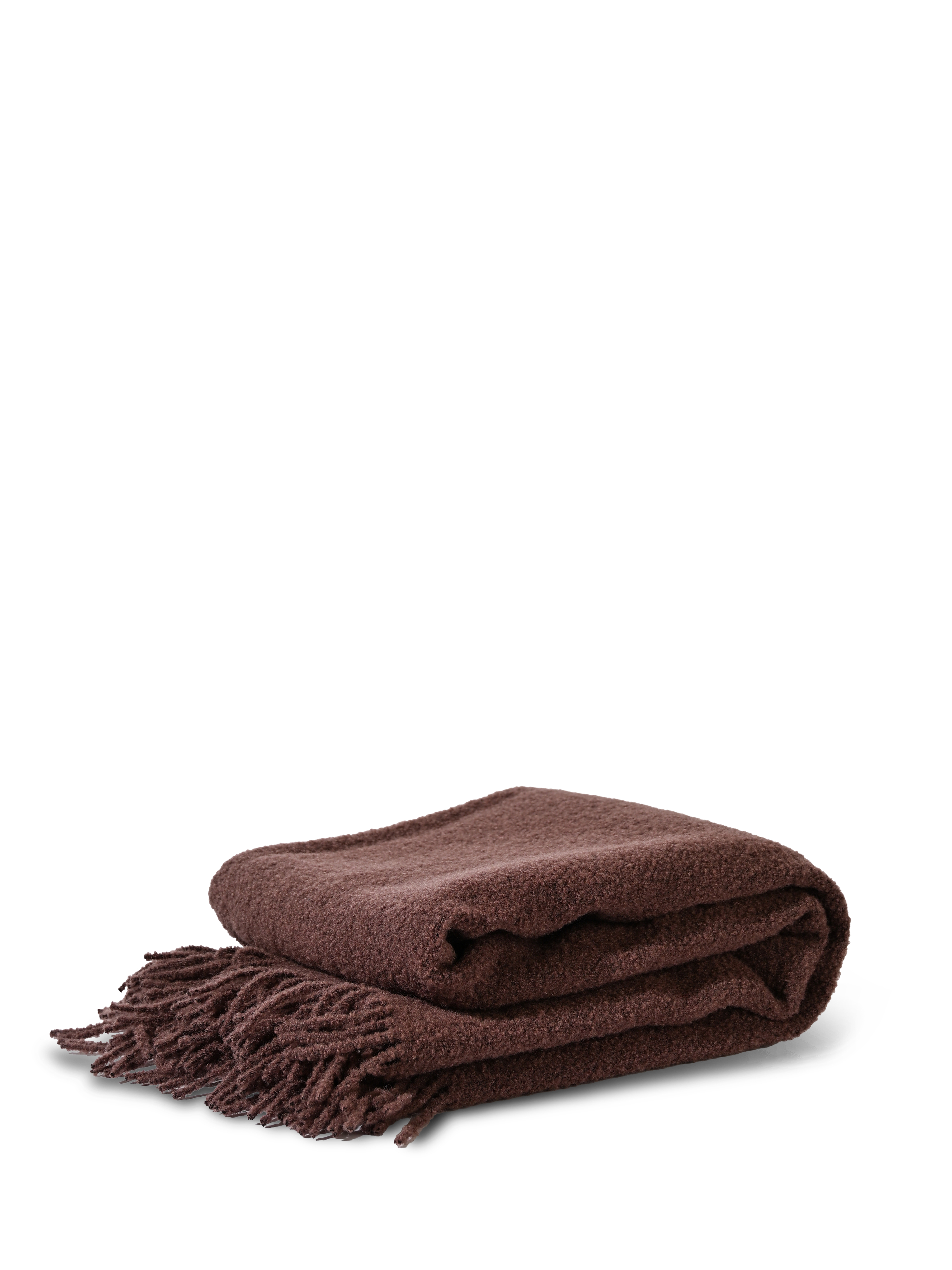 Med en otroligt lyxig känsla gör denna boucléfilt sig hemma överallt, oavsett om du myser inomhus eller kopplar av utomhus. Den värmer skönt och är samtidigt vacker att drapera över soffryggen tack vare sina dekorativa fransar. Filten är tillverkad i 80% ull och 20% polyester av bouclégarn, där små eller stora öglor av ull ger en extra fyllig och ullig textur utan att kännas tung. Denna chestnut-bruna nyans smälter in i alla miljöer. Med en generös storlek på 130 × 170 cm är den både omfångsrik och stilsäker. Endast handtvätt. Finns i fler färger. Design Byon Studio.