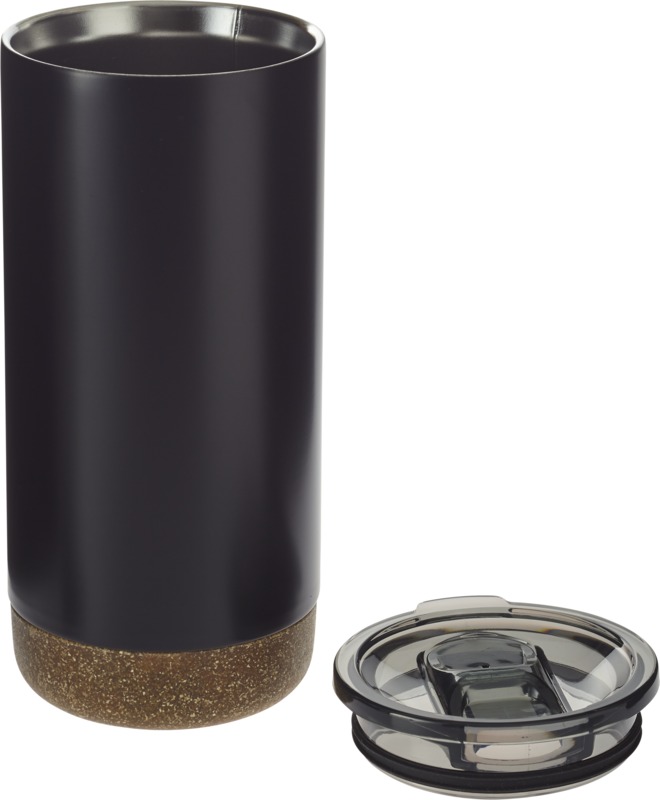 Trendigt designade termosmuggar med slitstark korkbas. Transparent lock med dricköppning. Rostfritt stål med tålig dubbelväggskonstruktion och kopparisolering. Håller din dryck varm i 8 timmar och kall i 24 timmar. Konstruktionen hindrar också att kondens utvecklas på utsidan.