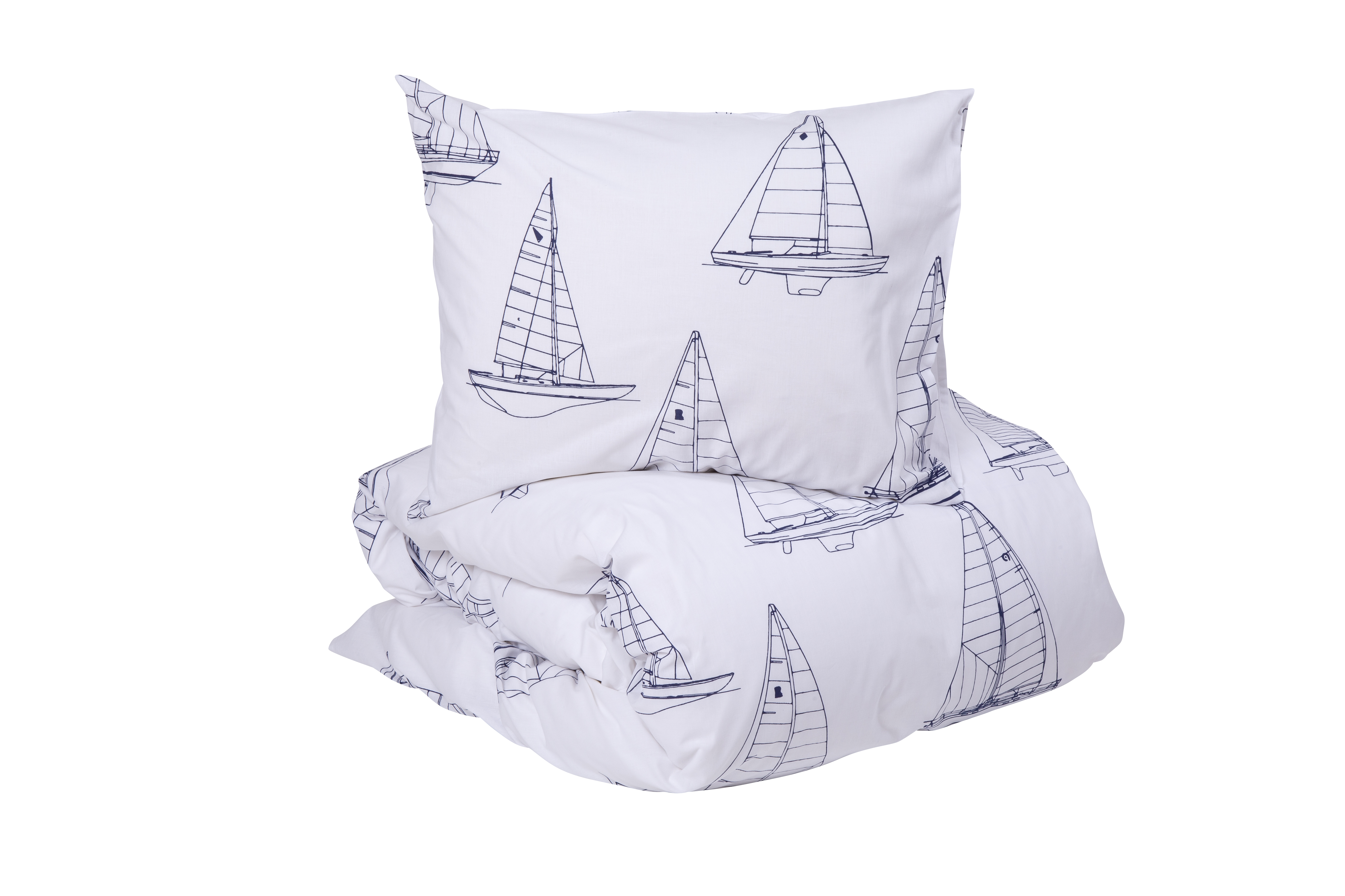 Det perfekta bäddsettet att ha i tex båten. Mönstret tar dina tankar till härliga turer på sjön.