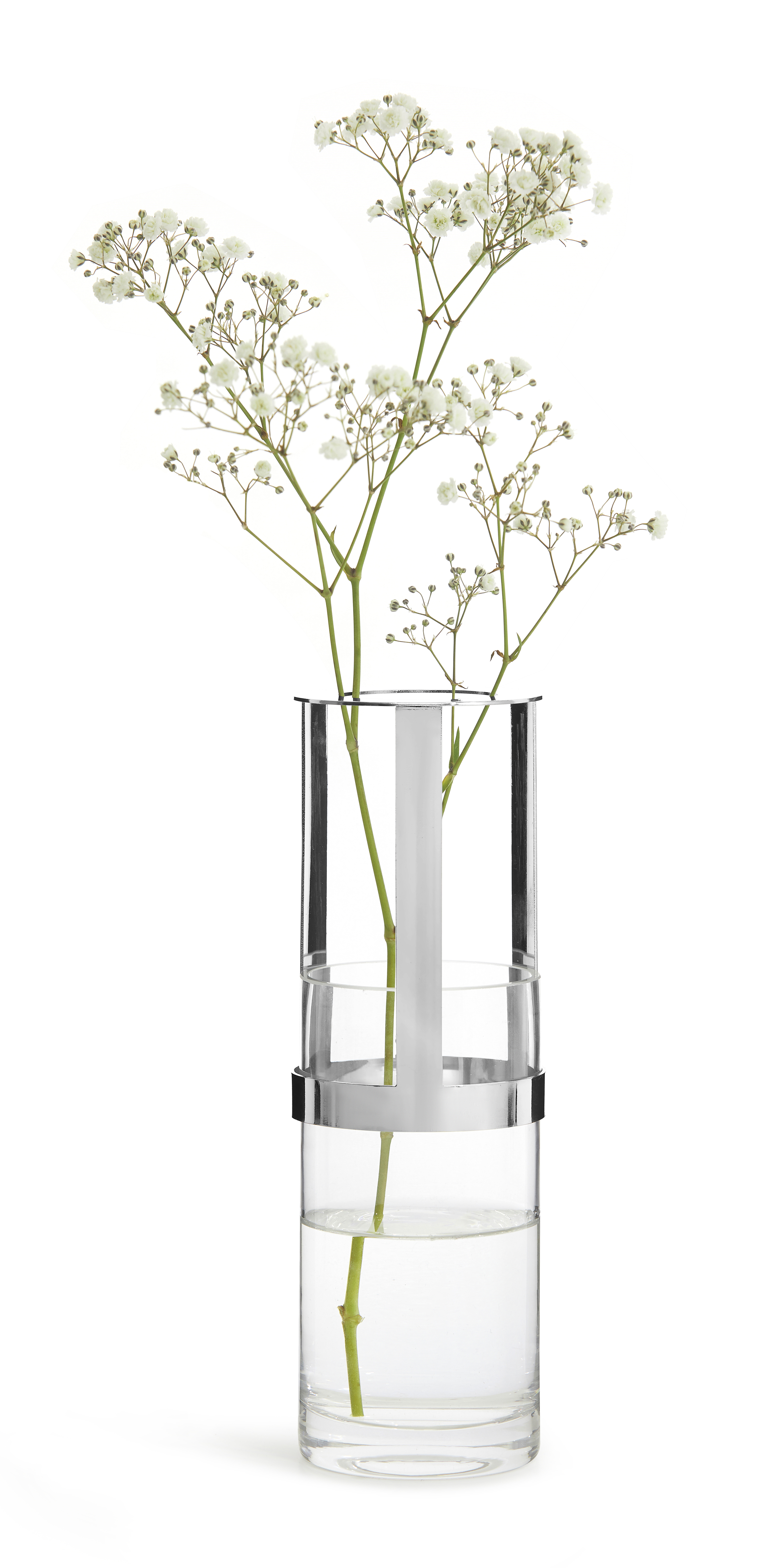 Hold är en unik, prisbelönad glasvas designad av Pascal Charmolu. Vasen består av munblåst glas och ett metallhölje som går att justera i höjdled. Genom att enkelt flytta upp eller ner metallhållaren anpassar man höjden till allt från mindre buketter till höga snittblommor. Hold liten är den minsta av tre storlekar., Metall/munblåst glas., 0,43kg Mått: H 150 mm Ø 80 mm