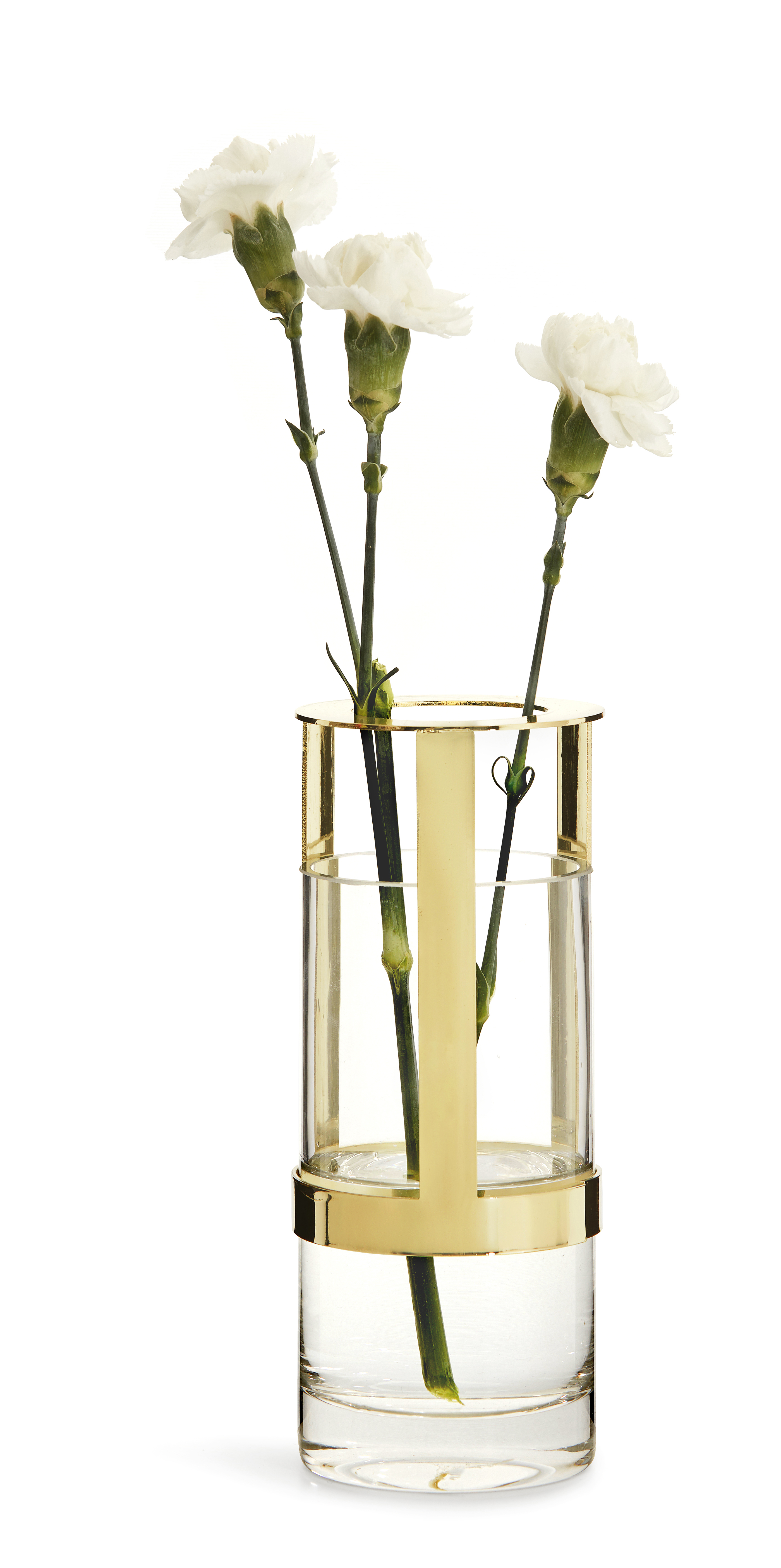 Hold är en unik, prisbelönad glasvas designad av Pascal Charmolu. Vasen består av munblåst glas och ett metallhölje som går att justera i höjdled. Genom att enkelt flytta upp eller ner metallhållaren anpassar man höjden till allt från mindre buketter till höga snittblommor. Hold liten är den minsta av tre olika storlekar., Metall/munblåst glas., 0,43kg Mått: H 150 mm Ø 80 mm