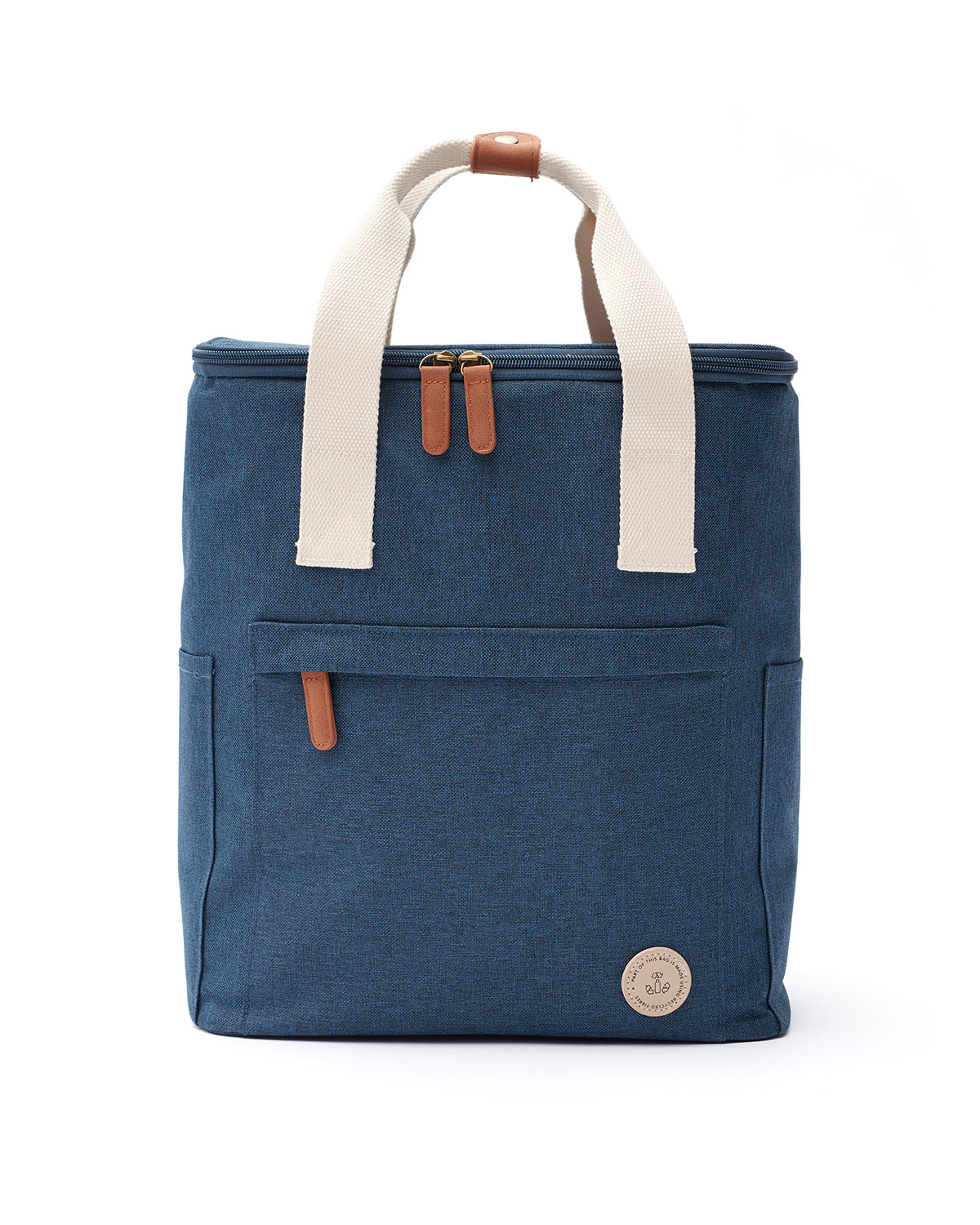 Kylryggsäck som passar utmärkt till alla utflykter, stora som små. Kylryggsäcken är försedd med två fickor på sidorna samt en större ficka fram. Den är tillverkad i 50 % återvunnet material från PET-flaskor med detaljer i konstläder och bomull. Kylryggsäcken håller kylan bra och du får enkel åtkomst med hjälp av locköppningen. På insidan av locket finns en nätficka med plats för en kylklamp så du får kyla i den övre delen av ryggsäcken som naturligt sprider sig ned i väskan. Den tjocka PEVA-vadderingen gör att kylryggsäcken håller kylan länge. Den är dessutom enkel att torka ur efter att den använts.