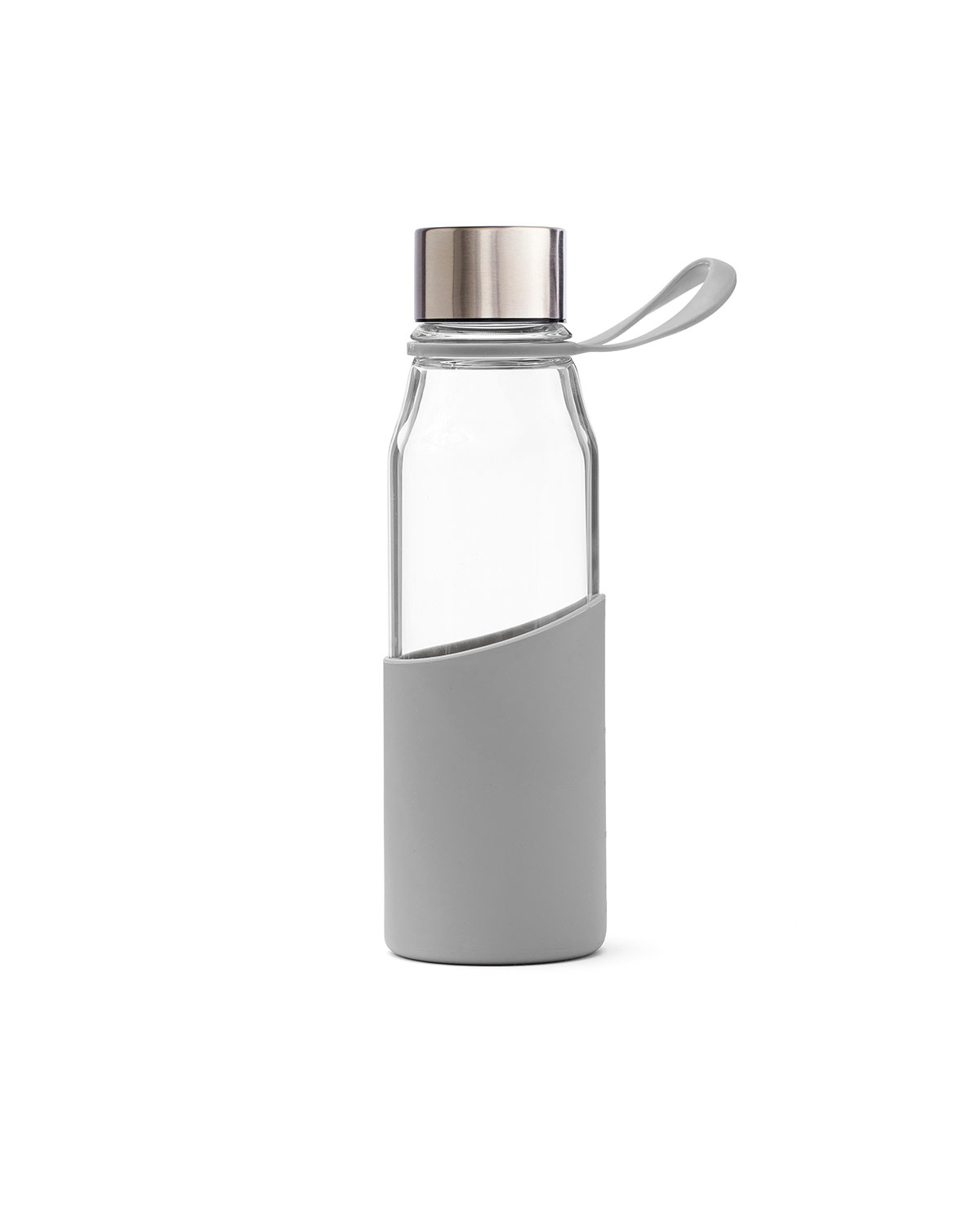 En snygg glasvattenflaska för träningen eller till att ha på kontoret. Denna vattenflaska är transparent i glas och silikon. Den har ett bra grepp som även gör den enkel att ta med när du är på språng. Flaskan tål maskindisk. Glasflaskan är tillverkad av Borosilikatglas. Borosilikatglasets egenskap är främst att de tål högre temperaturer samt snabba temperaturväxlingar och mer stöttåligt än vanligt glas.